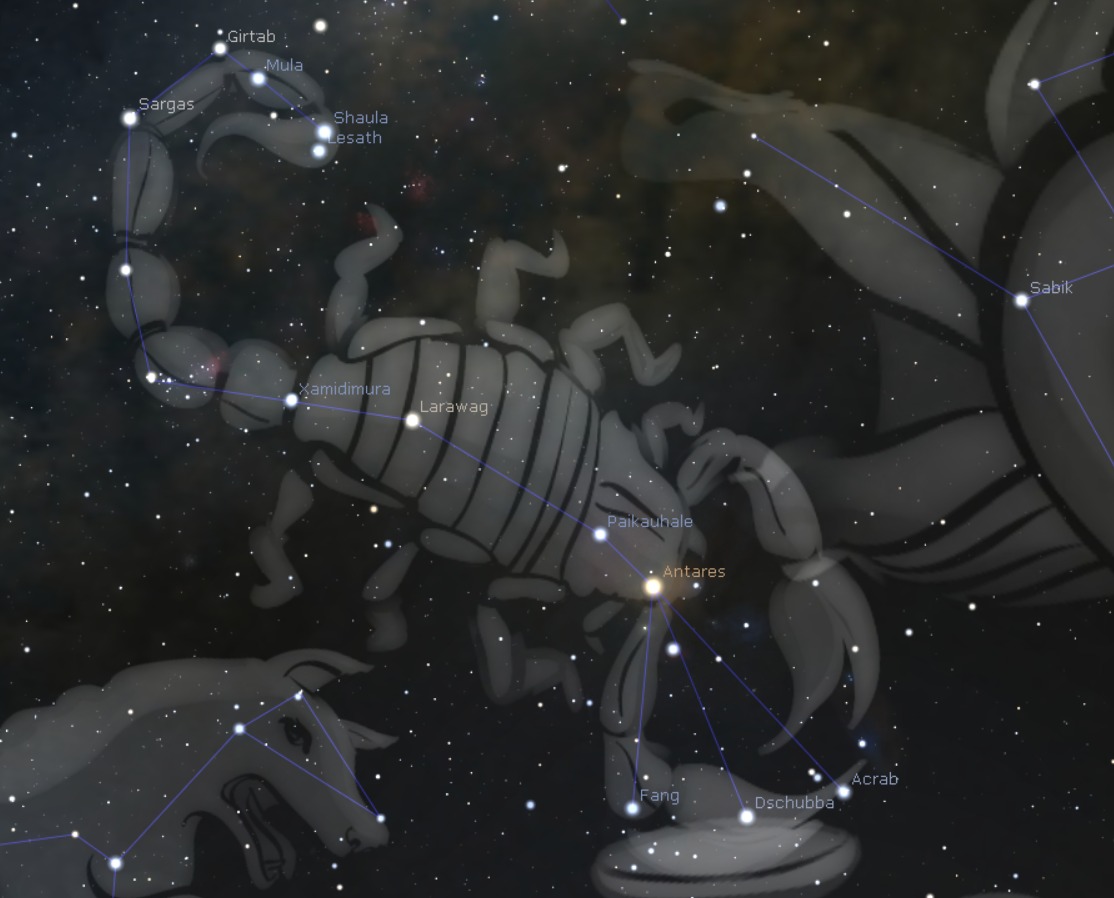 Hoje sabemos que a constelação do escorpião, que pode ser visto pelos dois hemisférios e, na Europa, representava o animal que matou Órion, representava para os Maori da Nova Zelândia o anzol que o deus Maui usou para trazer aquele território à superfície. Já para os indígenas da América do Sul que falavam tupi-guarani, representava a pata da constelação da Ema (Iandutim em tupi e Guirá Nhandu em guarani), ave que só existe por aqui. Para os aborígenes australianos, a constelação da Ema era a constelação do Emu, a segunda maior ave do mundo e parente da Ema, que é endêmica naquele país. Para compor o desenho da Ema (ou do Emu), utiliza-se também a via láctea como plumagem. Assim, cada povo significou aquele mesmo padrão de acordo com a sua cultura.
